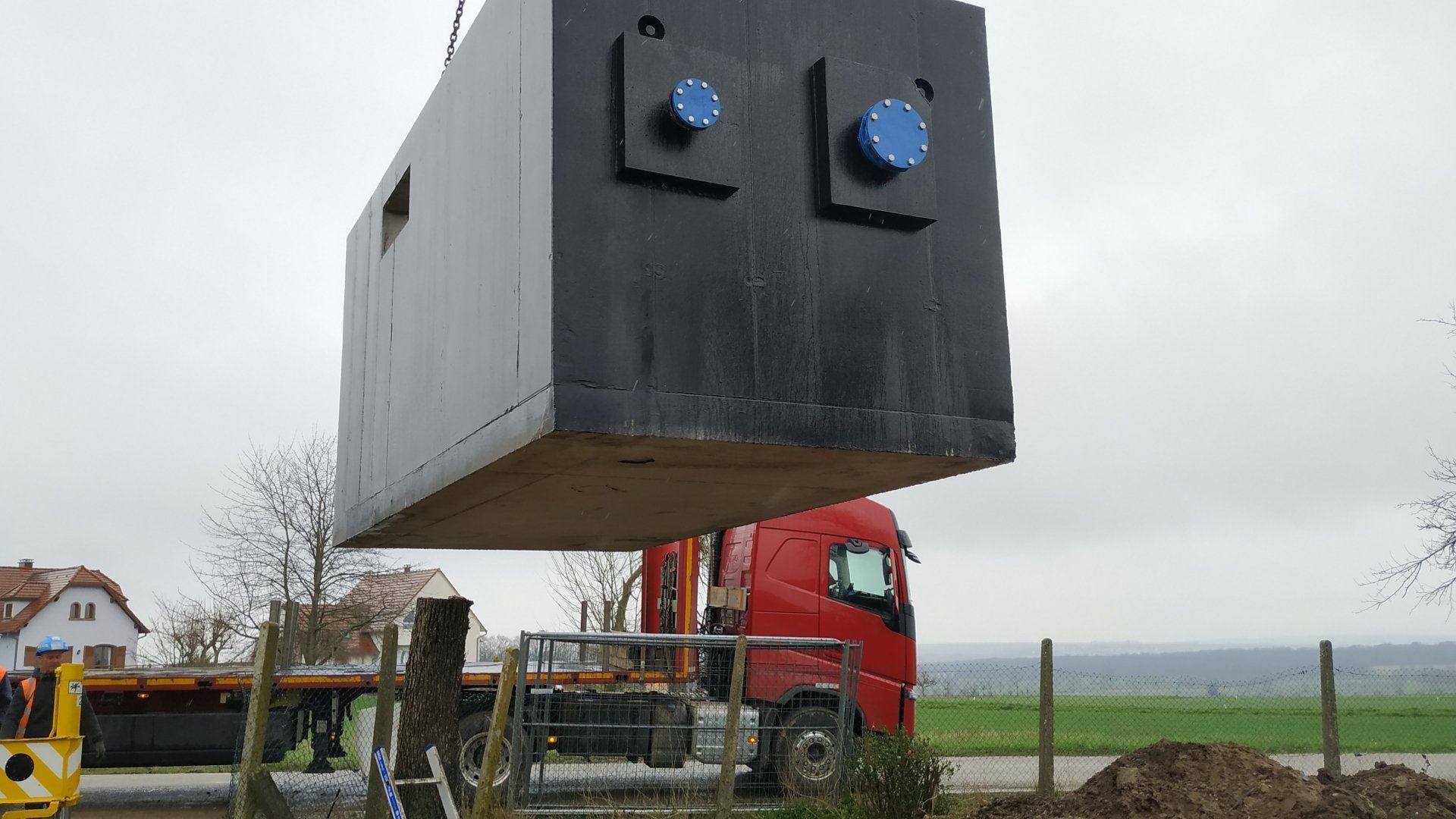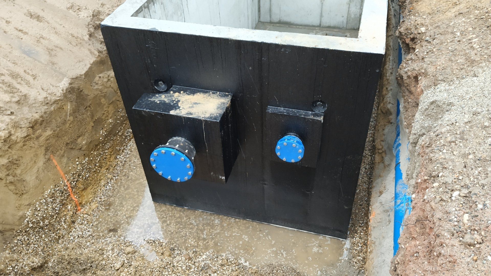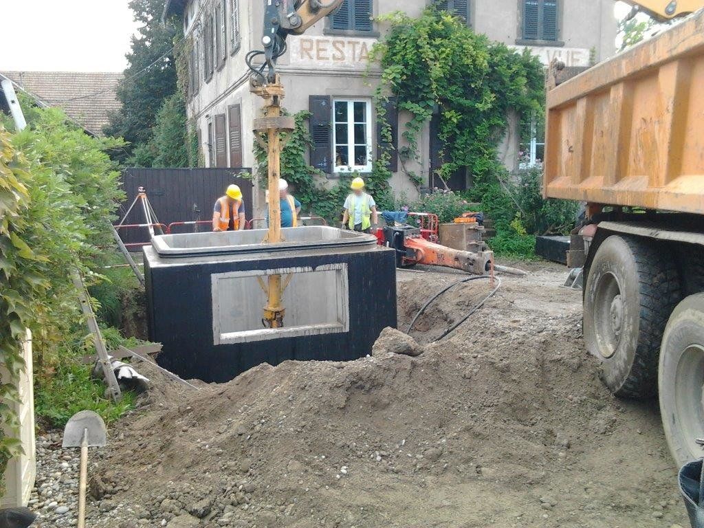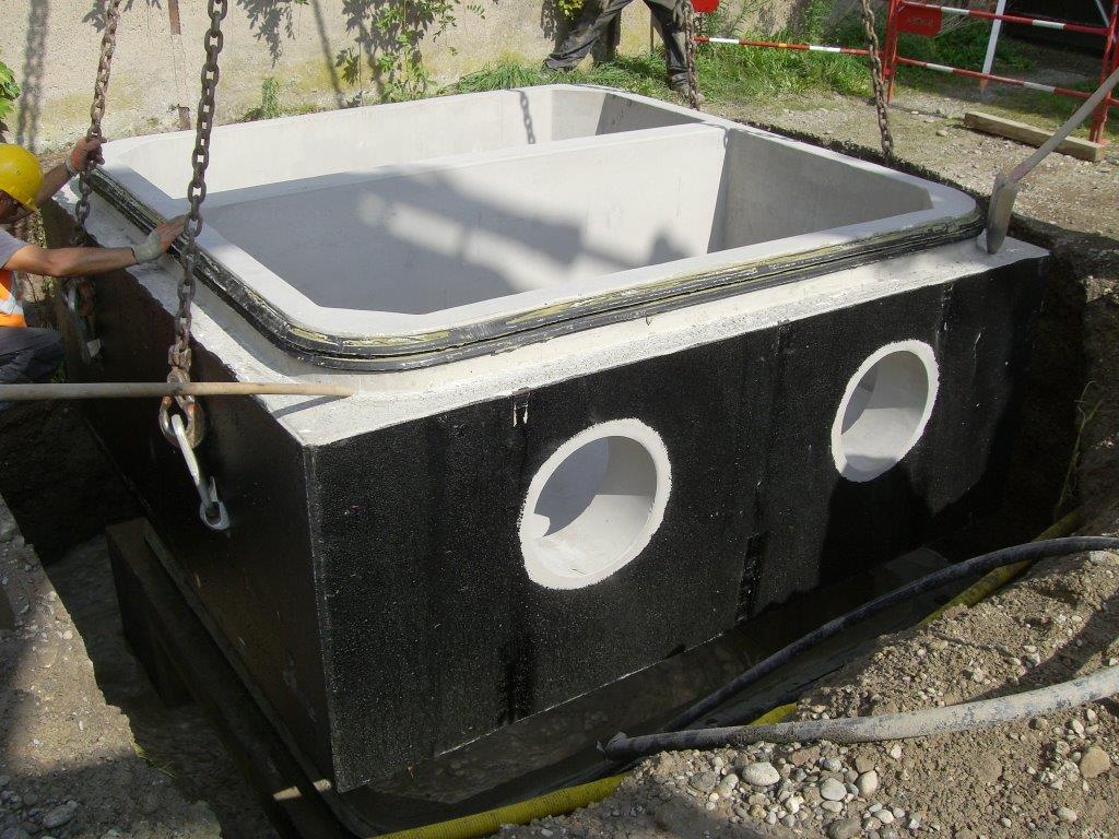 Ouvrage monobloc avec puisard inox intégré et revêtement bitumineux.