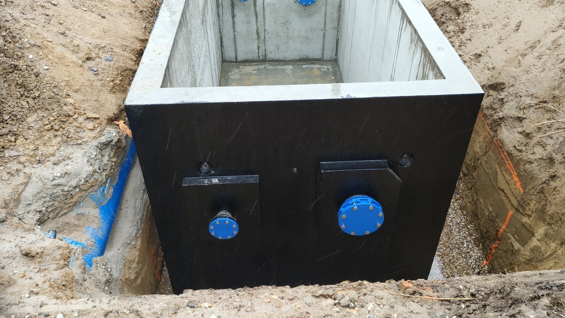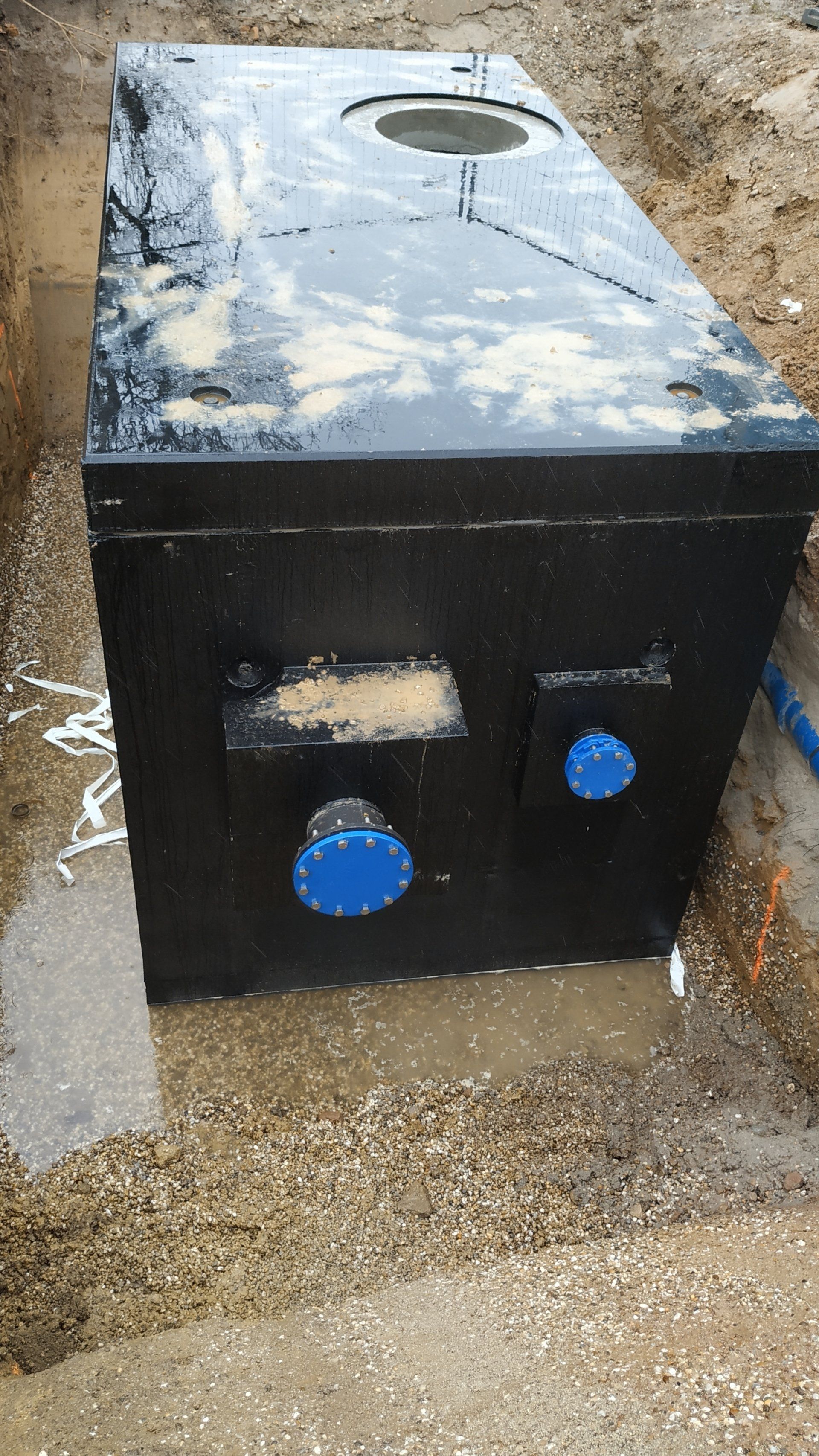 Ouvrage monobloc avec puisard inox intégré et revêtement bitumineux.